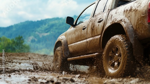 Rugged Truck Navigating Rocky Hill Terrain