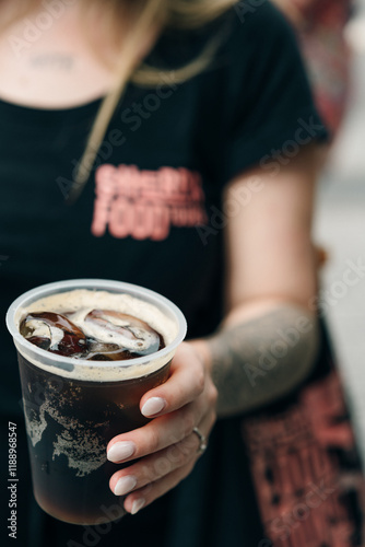 Rum and Cola Cuba Libre cocktail in a woman's hand.