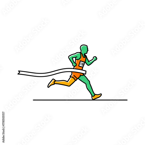 Runner sprints towards the finish line during a track and field competition, showcasing speed and determination in a minimalist style.