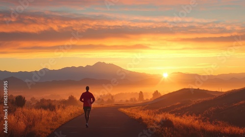 Runner stretching on a track as dawn breaks, focused and ready, anticipation, expectation, ambition