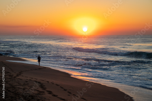 running along the beach at sunrise