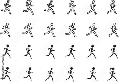 Running and walking people icons – Vector illustration with editable strokes.eps