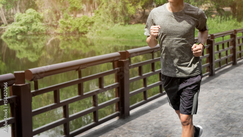 Running man. Male runner at sprinting speed training for marathon outdoors