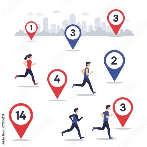 Running Race with Map Pins Illustration
