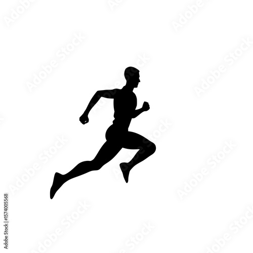 Running Silhouette: A dynamic black and white vector illustration of a male athlete sprinting, showcasing speed and athleticism against a white backdrop.