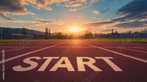 Running start at sunrise on a track sports field photography outdoor wide angle motivation and energy