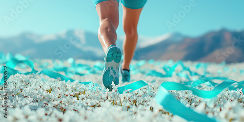 Running through blooming wildflower landscape, female athlete enjoys nature