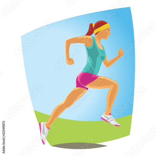 Running woman in sport wear. Detailed Vector