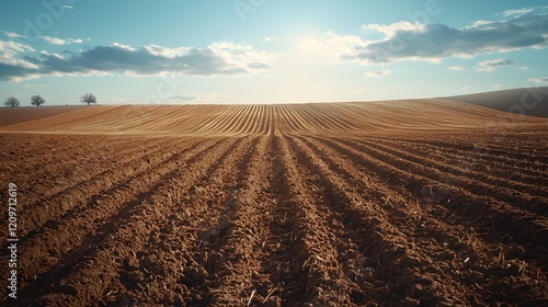 Rural Farmland with Plowed Field and Cloudy Sky Horizon