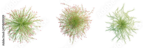 Russelia equisetiformis Tree plan, top view, cutout, transparent background, isolate, Vibrant green bush with delicate red tubular flowers, top view