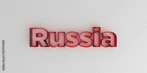 Russia - Red glass text on white background - 3D rendered royalty free stock image.