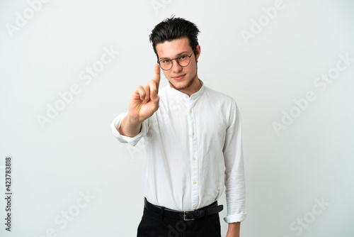 Russian Business man isolated on white background showing and lifting a finger