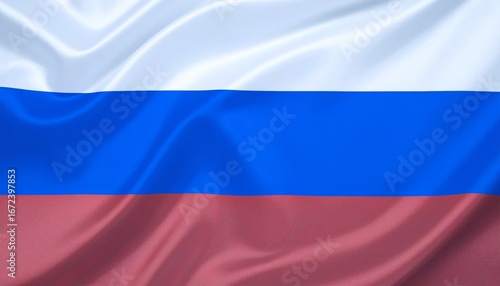 Russian flag with horizontal white, blue, and red stripes gently waving, symbolizing national pride and heritage.