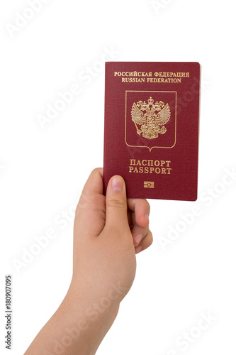 Russian foreign passport in the hand isolated on white background