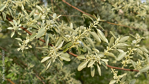 Russian olive tree in spring blossom