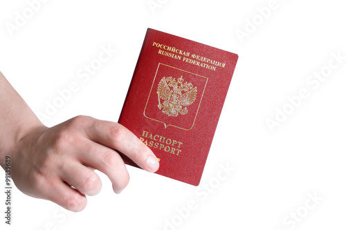 Russian passport hold in arm isolated on white
