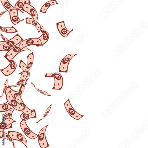 Russian ruble notes falling. Floating RUB bills on