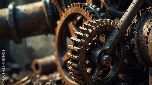 Rusted Metal Gears and Machine Parts with Corroded Surface