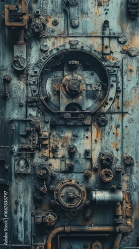 Rusted Metal Panel with Industrial Machinery Parts