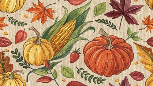 Rustic Autumn Harvest Sketch, Burlap Background, Fall Farmhouse Art, Autumnal Illustration