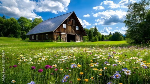 Rustic Barn in Wildflower Meadow - Idyllic landscapes