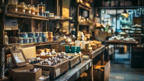 Rustic Boutique Store Interior with Shelves of Organic Products