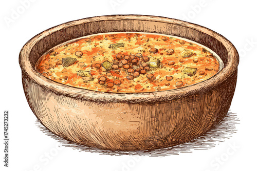 Rustic Bowl Filled with Colorful Soup on Transparent Background Illustration