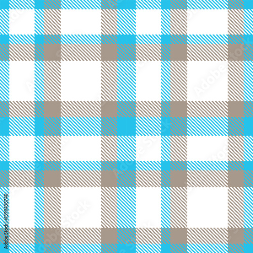 Rustic bright sky blue and Bright white Seamless Tartan Fabric Design