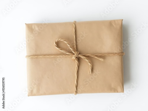Rustic brown paper parcel secured with twine, simple knot, wrapping,natural