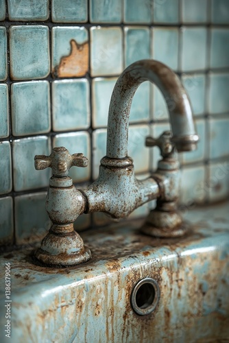 Rustic Charm: A Weathered Faucet in a Vintage Bathroom