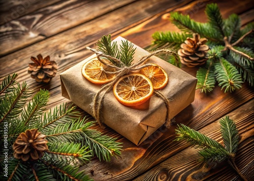 Rustic Christmas Gift Dried Orange Evergreen Branches A Festive Natural Holiday Decoration