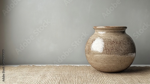 Rustic Clay Pot on Neutral Background with Textured Surface and Natural Earthy Tones Ideal for Home Decor, Art, or Craft Projects in Minimalist Style