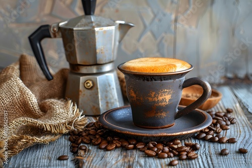 Rustic Coffee Scene with Espresso and Moka Pot