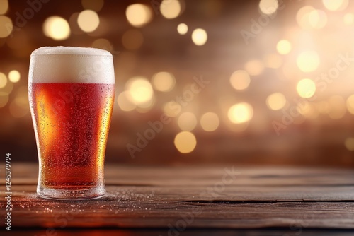 Rustic Craft Beer in a Glass with Glow and Bokeh Background