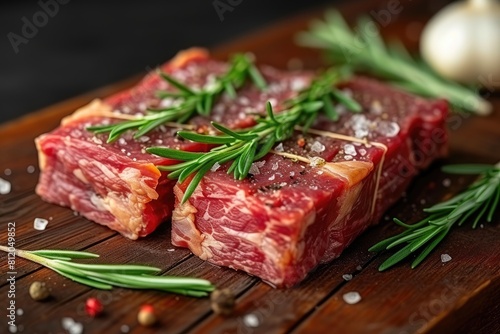 Rustic Elegance: Raw Meat Arranged on Antique Wood
