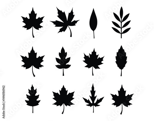 Rustic Fall Leaves and Berry Sprigs – Black Vector
