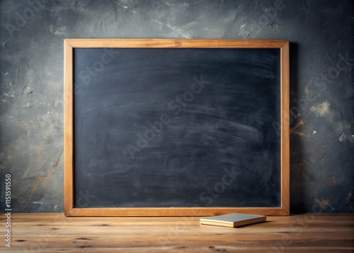 Rustic, grunge chalkboard; blank, dark surface ideal for classroom-themed design or education projects.