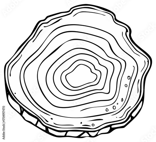 Rustic Hand Drawn Wood Slice with Natural Annual Growth Rings Line Art