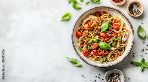 Rustic Italian Spaghetti Bolognese Dish with Herbs