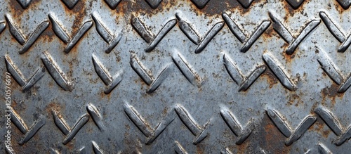 Rustic metal plate background with diamond pattern texture for industrial and design applications.