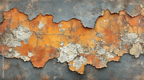 Rustic orange and gray metal texture shows peeling paint dramatic decay. AI Generated