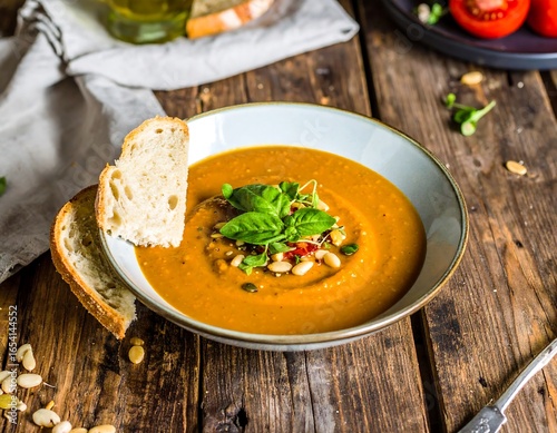 Rustic orange soup with bread