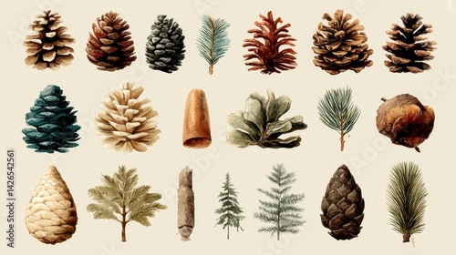 Rustic pinecones and fir needles watercolor painting neutral brown tones forest inspired seasonal holiday theme