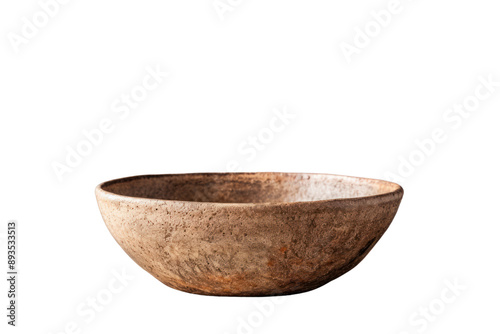 rustic stoneware bowl with a hand-thrown texture and a warm, earthy color. Isolated on white background