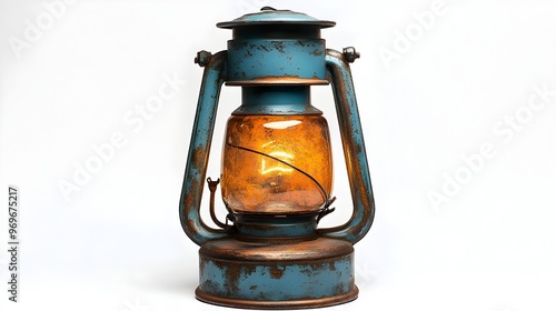 Rustic Vintage Inspired Lantern Style Lamp with Metal Handle Isolated on a Clean White Background Warm Glowing Illumination Creates a Cozy Atmospheric Ambiance