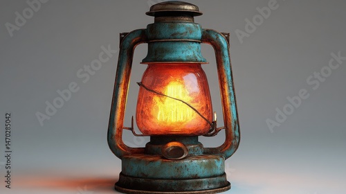 Rustic Vintage Oil Lantern with Glowing Light Weathered Metal Antique Design