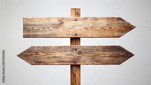 Rustic Wooden Directional Sign with Two Arrows Pointing in Opposite Directions on Gray