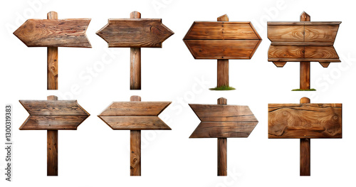 Rustic Wooden Directional Signs for Outdoor or Indoor Use, Bundle Set Collection, Isolated on Transparent Background