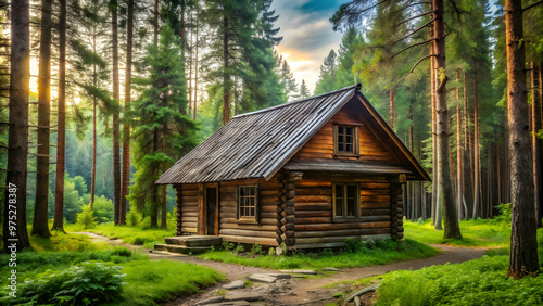Rustic wooden house in the forest , cabin, cozy, home, nature, retreat, timber, wood, architecture, cottage