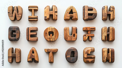 Rustic Wooden Letters Alphabet Handmade Crafts Typography Design Elements
